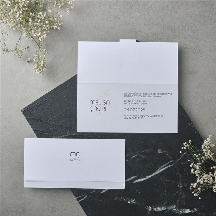 · Davetiye kutulu olarak tasarlanmış olup zarf ve aksesuarları içerisinde bulunmaktadır.